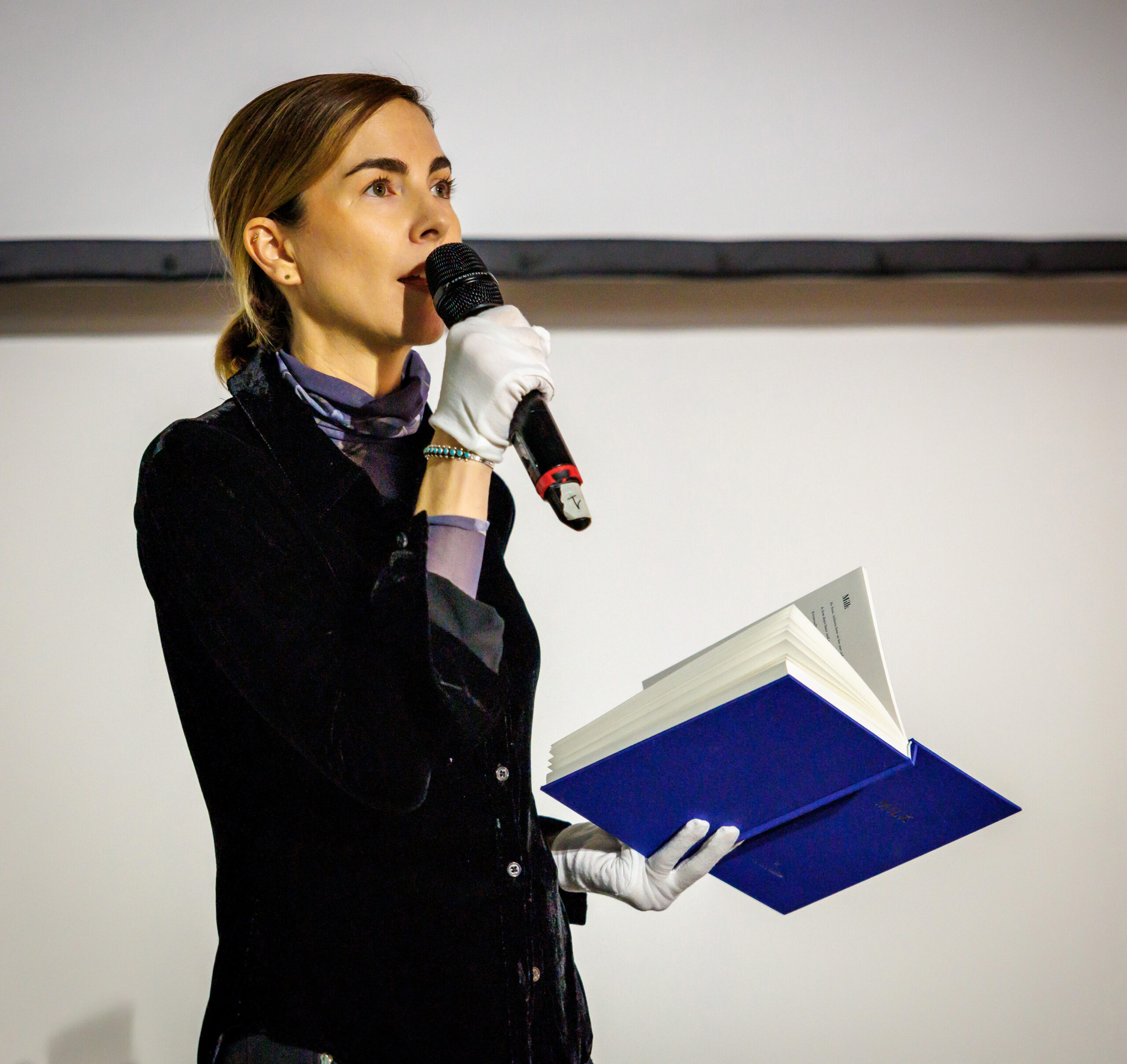 Ana María Caballero presenta ‘Milk’ una de sus esculturas de libros en Art Genève, 2025.