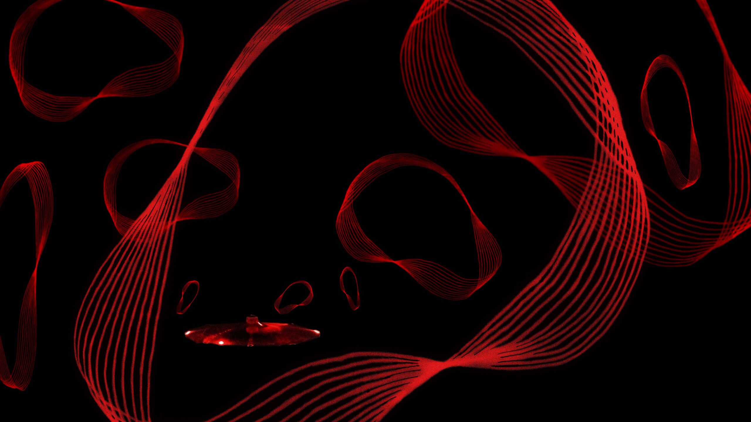 En el centro de la sala vibra un platillo —el instrumento de música—. Un sistema que involucra energía y láseres activa el platillo, lo que genera que sus vibraciones naturales se tornen audibles y visibles. Así, el platillo suena y los reflejos de las ondas que emite, flotan a su alrededor. Con este “material” etéreo, que se escucha y además se ve, se compone una narrativa abstracta que se desenvuelve en el tiempo y el espacio. A lo largo de la pieza, el instrumento —y a su vez el espacio que lo rodea— transitan por diferentes niveles de activación que se manifiestan en variaciones de la complejidad sonora y de las ondas que se visualizan en los reflejos. Movimiento armónico explora la esencia vibrátil de nuestro mundo natural, y la forma como esta “vitalidad de todo” determina en gran medida lo que somos y todo aquello que surge de nuestro ser.