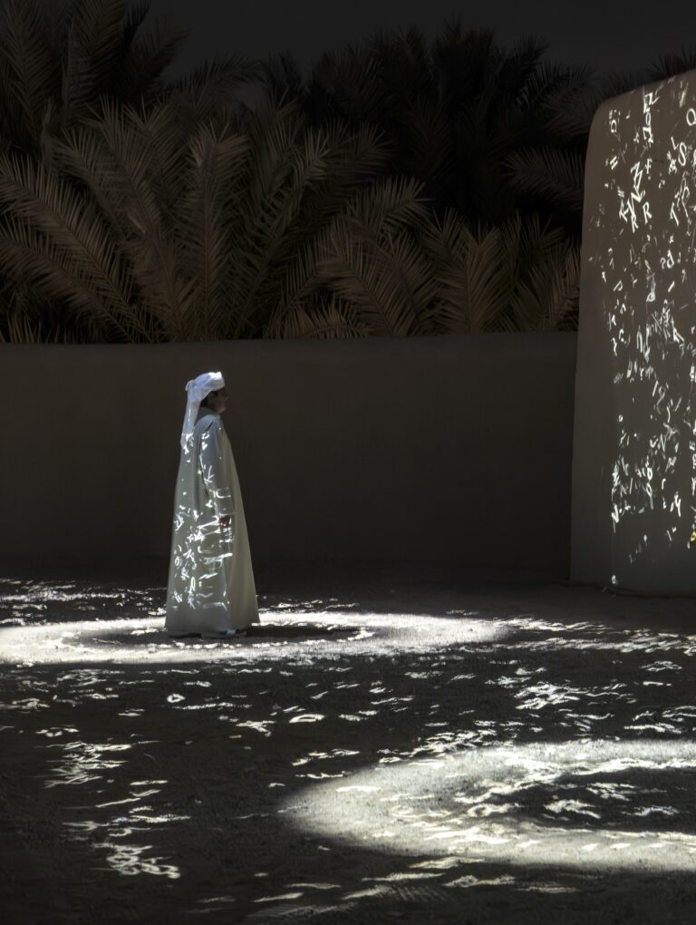 ‘Pulse Canopy’ y ‘Translation Stream’ de Rafel Lozano Hemmer en Manar Abu Dhabi 2025, un evento de arte público a gran escala que transforma Abu Dhabi y Al Ain en una galería al aire libr...