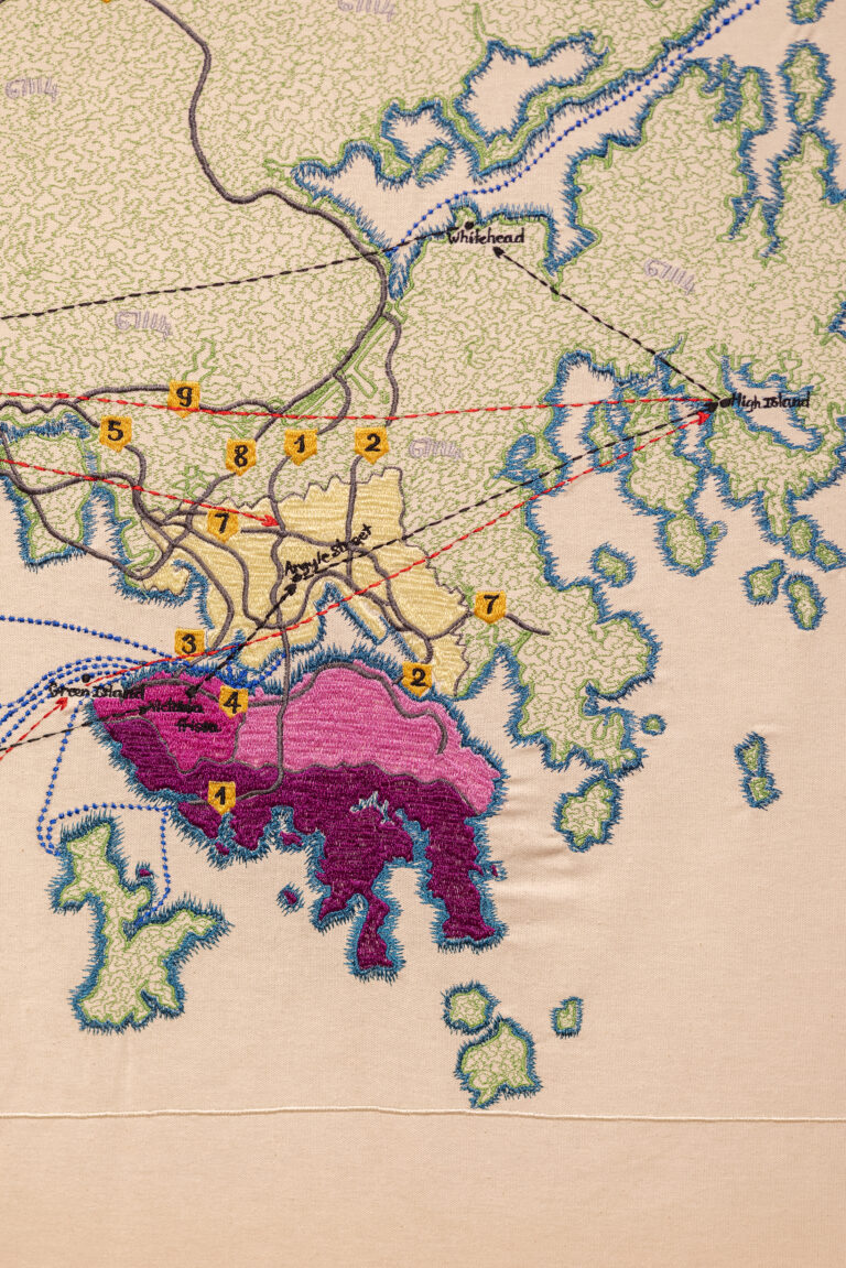 Tiffany Cgung presenta 'For The Living ( 2023)', un extenso mapa del mundo que traza las rutas mundiales de los inmigrantes del sudeste asiático y los refugiados de la guerra de Vietnam, junto al ...