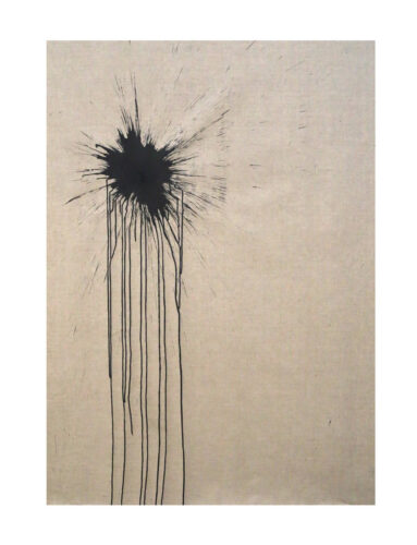 Bola de cristal con tinta china sobre lino.