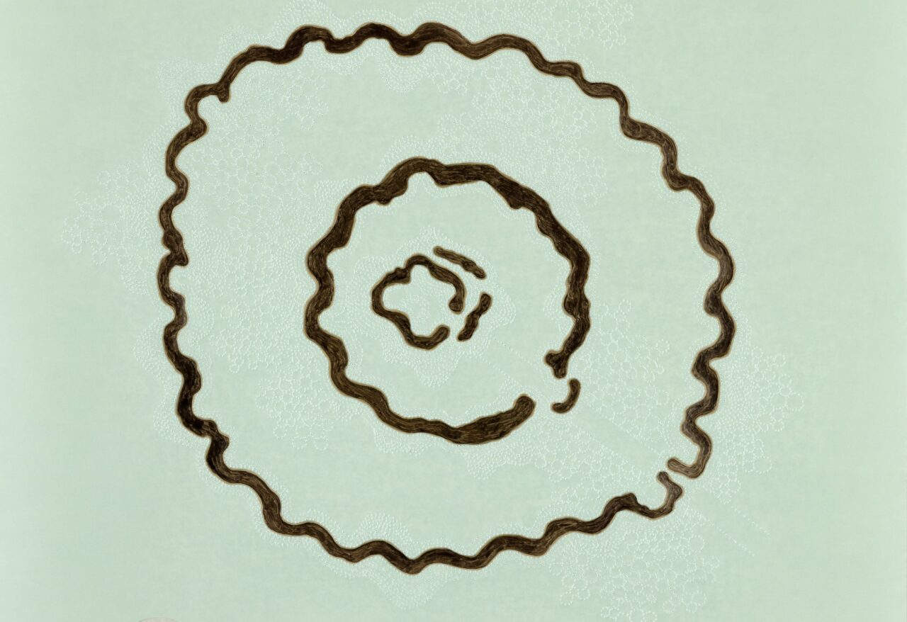 Tinta, óleo y perforación manual sobre vitela y papel.