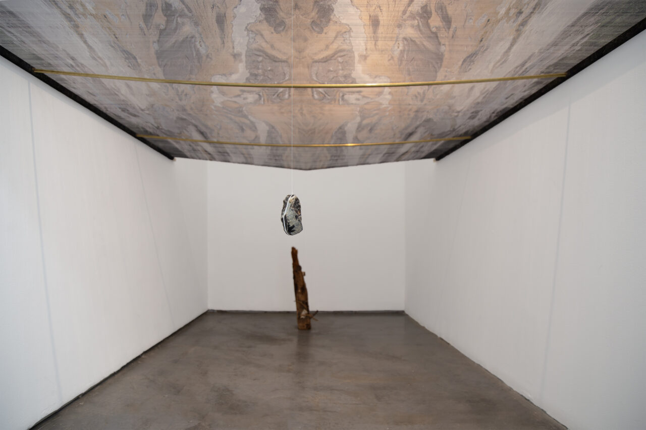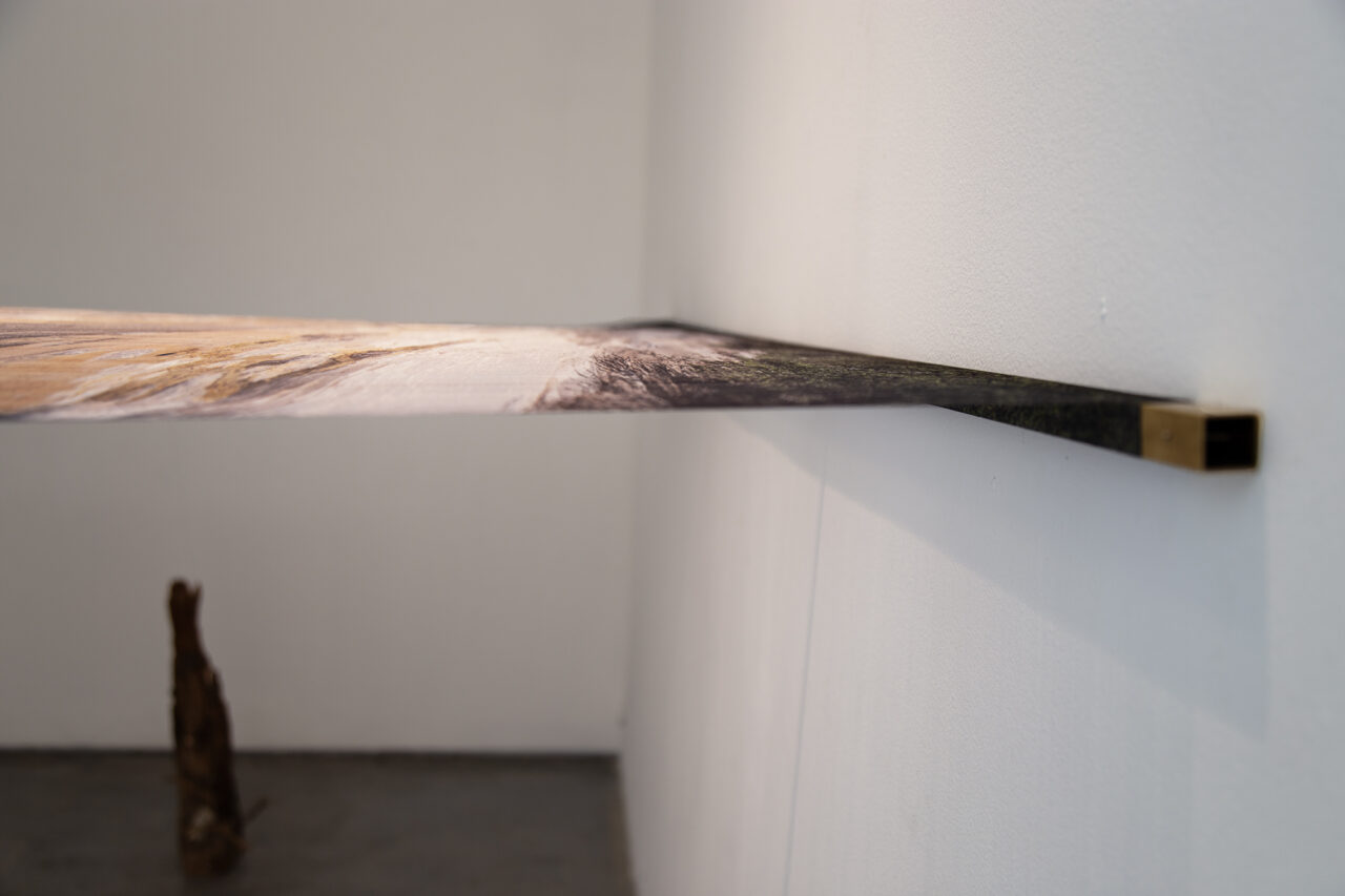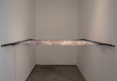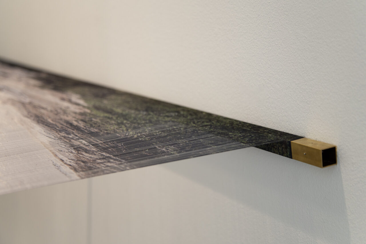 Sublimación sobre seda de poliéster parcialmente destramada, bronce.