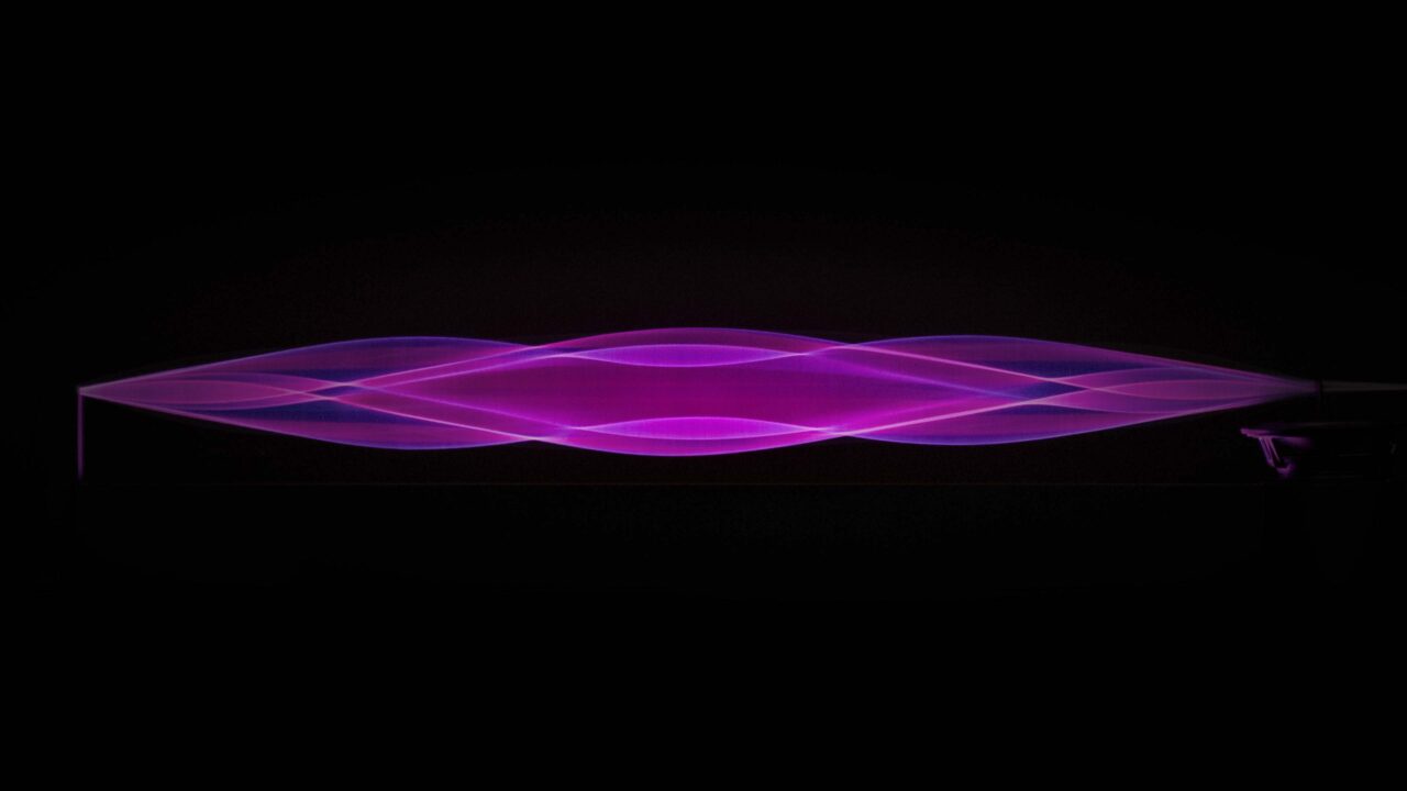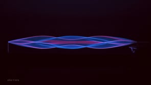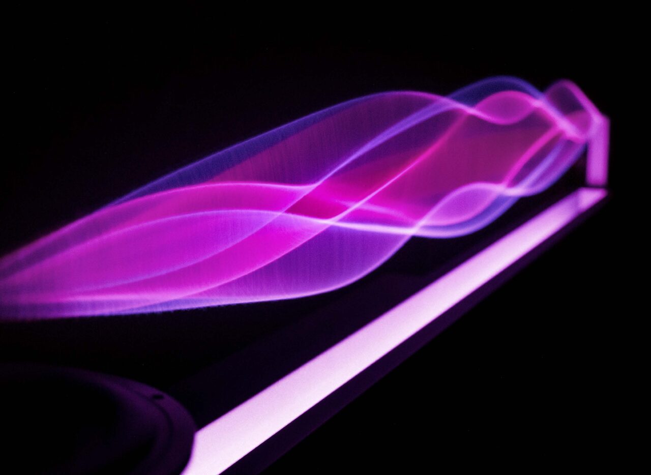 Escultura cinética de luz y sonido. Infrasonido, altavoz, luz, cuerda vibrante.
