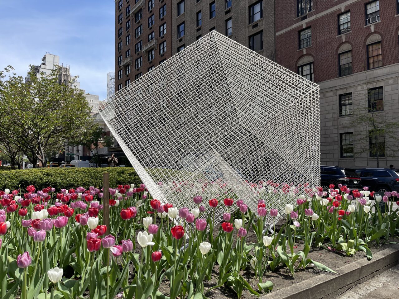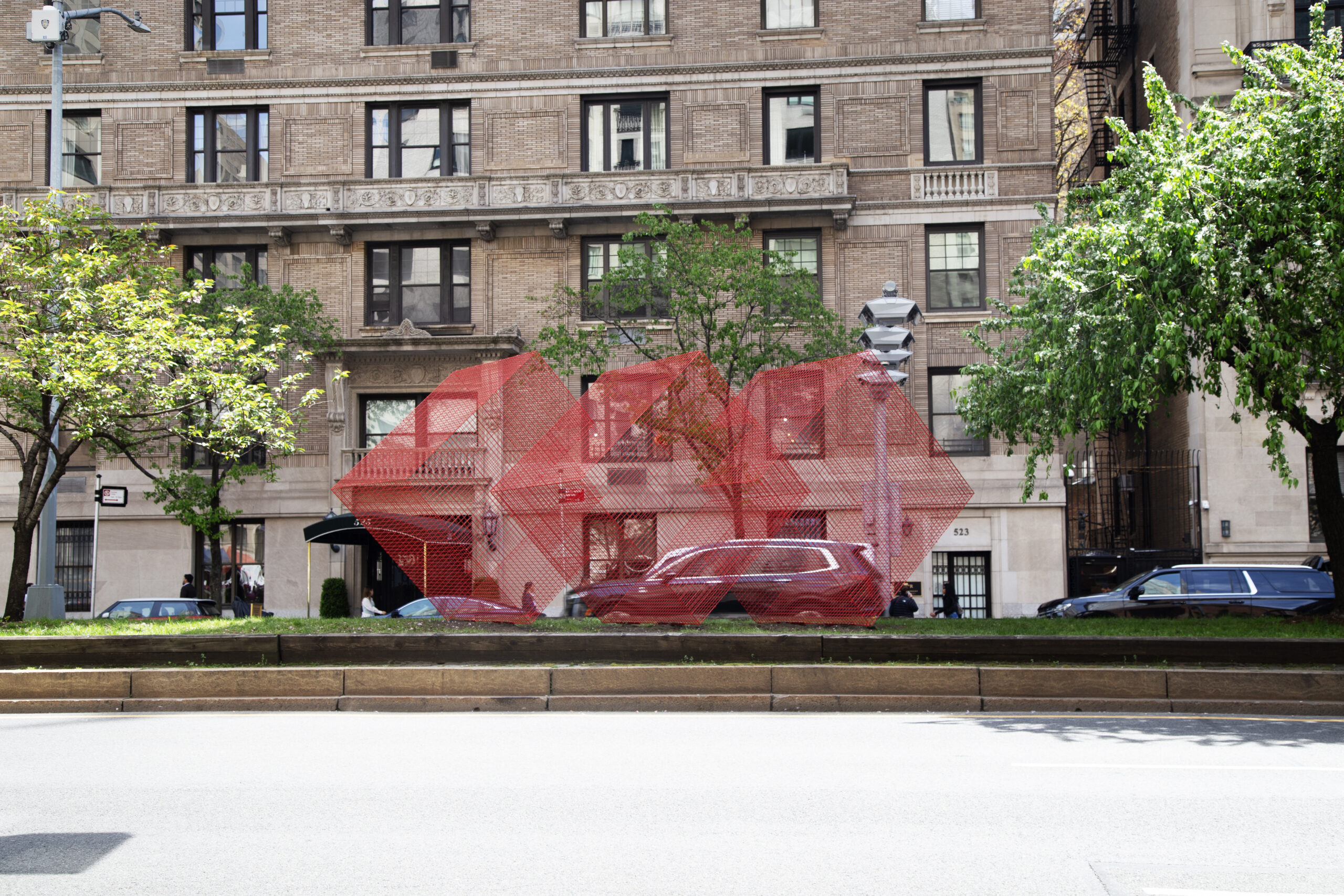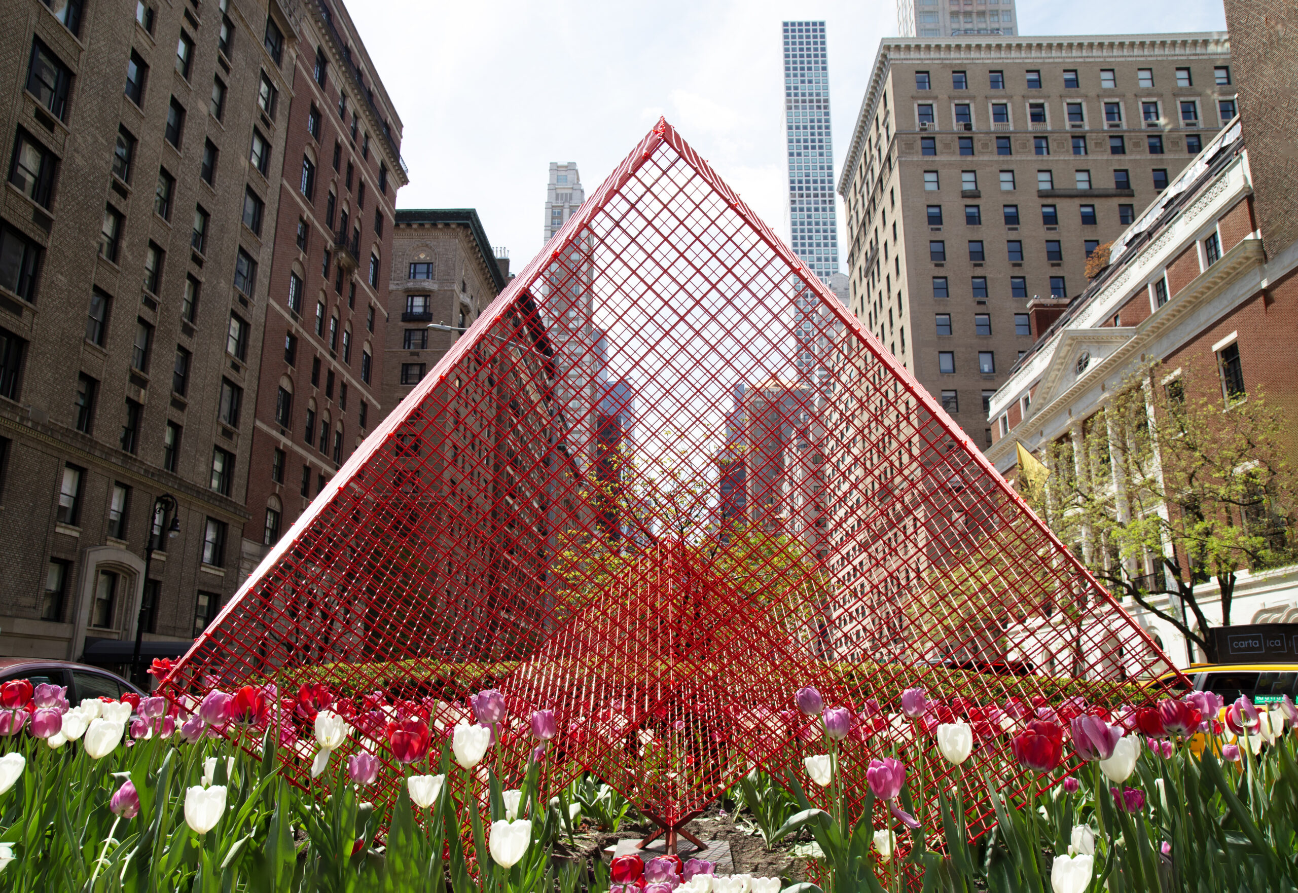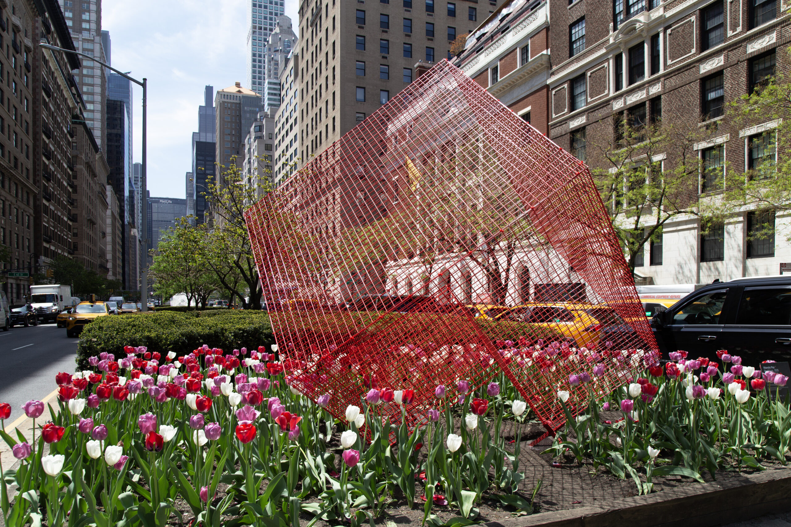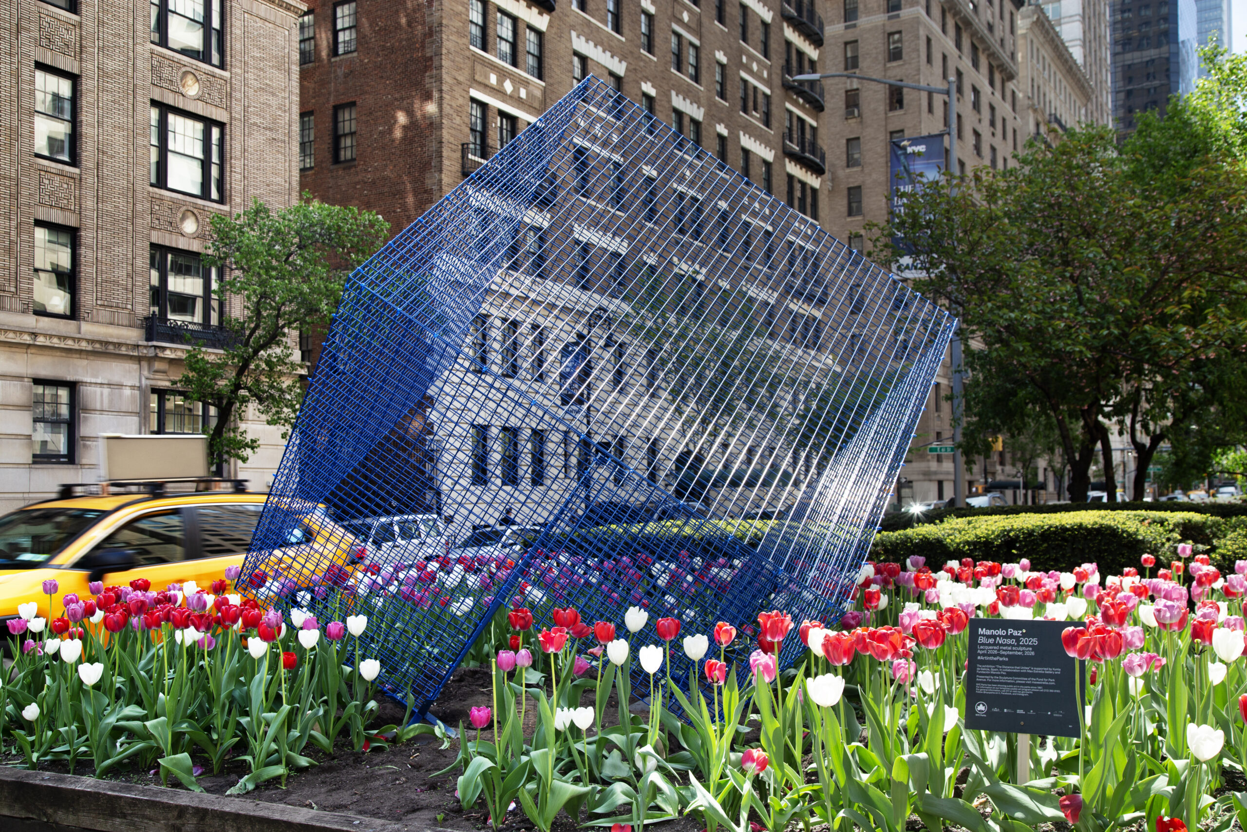 In addition to ‘Cathedrals’, the exhibition will include four striking metallic sculptures. Among these is a red version of ‘Transparencies’, a piece that allows the surrounding cityscape to filter through it, creating a stunning visual interplay. Completing the exhibition are three variations of Paz’s NASA series, in white, blue, and red, referencing the colors of the American flag. These intricate sculptures, designed as three-dimensional metal grids, echo the geometric patterns of New York City’s streets and buildings, further reinforcing the deep connection between the artist’s work and the urban landscape.