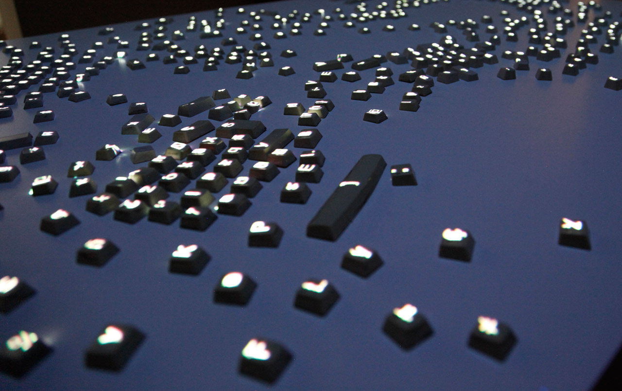 Projector, media player, discarded keyboards, animation 4’16” loop