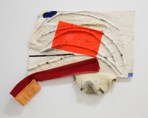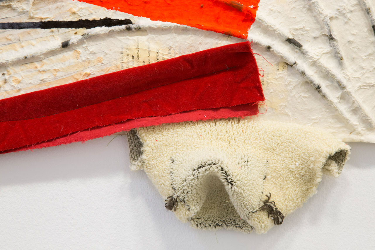 Fabric, marker, velvet, paint, handmade paper from Nepal, electric tape from Nepal street, printed menu, old sock