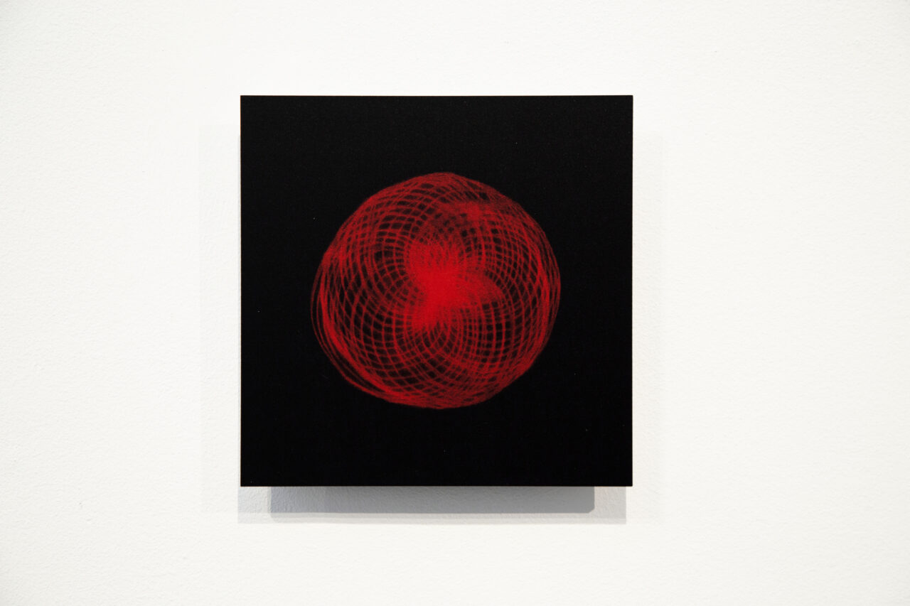 Diptych from the series The Music of Things, a set of photographs derived from the installation Harmonic Motion, winner of the Prix Ars Electronica 2023. This installation generates moving waves by activating a musical cymbal through an energy system and lasers. The cymbal’s natural vibrations become both audible and visible, and the reflections of the waves it emits float around it. With this ethereal material—something that can be both heard and seen—an abstract narrative unfolds through time and space, exploring the vibratory essence of our natural world.