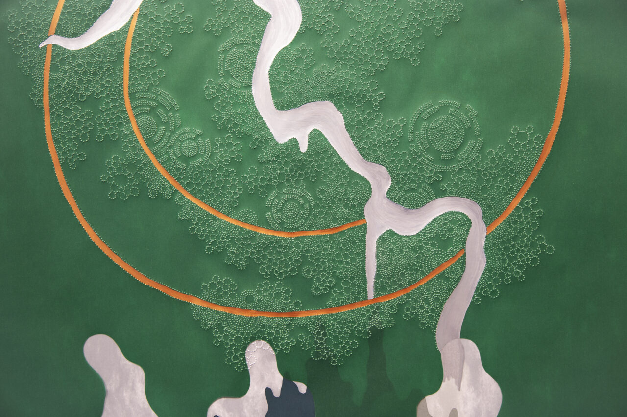 Ink, oil and hand perforating on vellum and paper