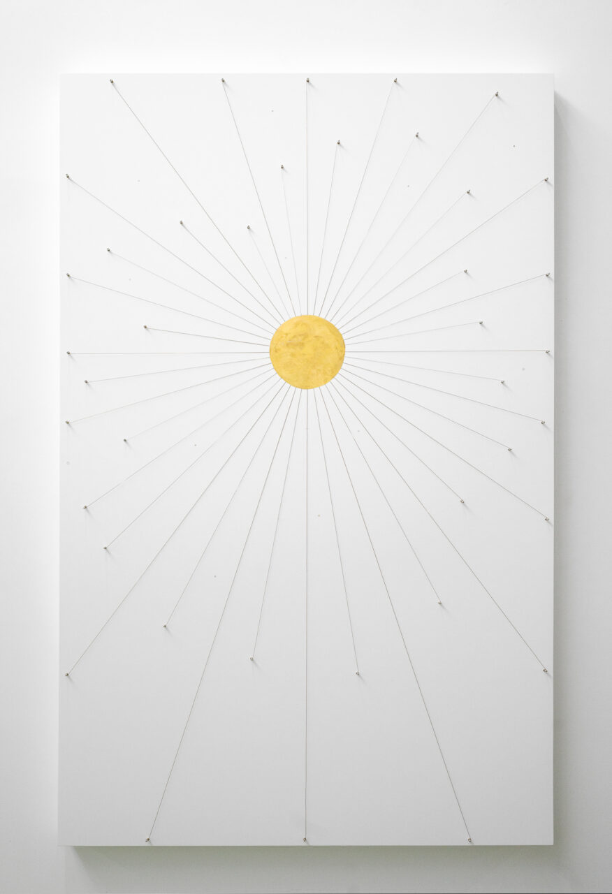 Cuerdas de clavicémbalo, clavijas, oro, acrílico, madera, nácar