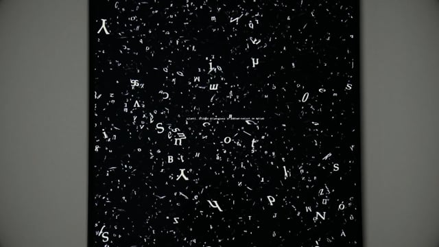 86″ screen, generative animation , computer.